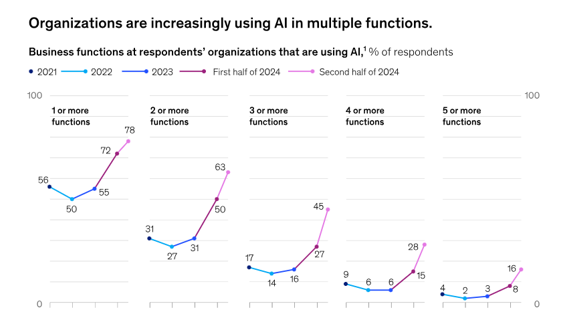 Figure 1: Organizations are using AI in more business functions [5]