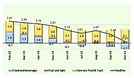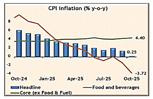 [4] Canara Bank - Economic Research Vertical , "India's CPI Inflation falls to Historic low of 0.25 % in October 2025 - Food Deflation and GST Cuts Drive the Slide," 12 Nov 2025. [Online]. Available: https://www.canarabank.bank.in/documents/d/guest/5-cpiinflationoctober2025. [Accessed 18 Feb 2026].
