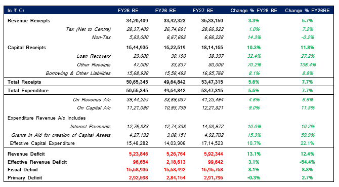 The Budget 2026 was along expected lines, barring the hike in STT (which was not expected) and no adjustment on capital gains. Given the geopolitical uncertainties the Government has turned the focus towards strengthening the economy internally and strive towards self-sufficiency in critical areas (defence, infrastructure, manufacturing etc). The Budget focused towards job creation and across both manufacturing and services while keeping fiscal consolidation. The fact that nominal GDP growth for FY27 is projected at 10%, is pragmatic to start with, although it leads to higher fiscal deficit numbers as well as market borrowing. One of the major short-term dampeners which spooked equity markets is 150% and 50% increase in STT for Futures and Options to 0.05% and 0.15% respectively. However, the Budget has proposed to tax Buybacks as capital gains vs deemed dividend earlier (which is positive). More importantly, at a time when FIIs are unsure to make a comeback, India has lured Persons Resident Outside India (PROI), by raising the aggregate investment limit for NRIs and OCIs in listed Indian companies from 10% to 24% (limit for an individual NRI in a company is increased to 10% from 5%).